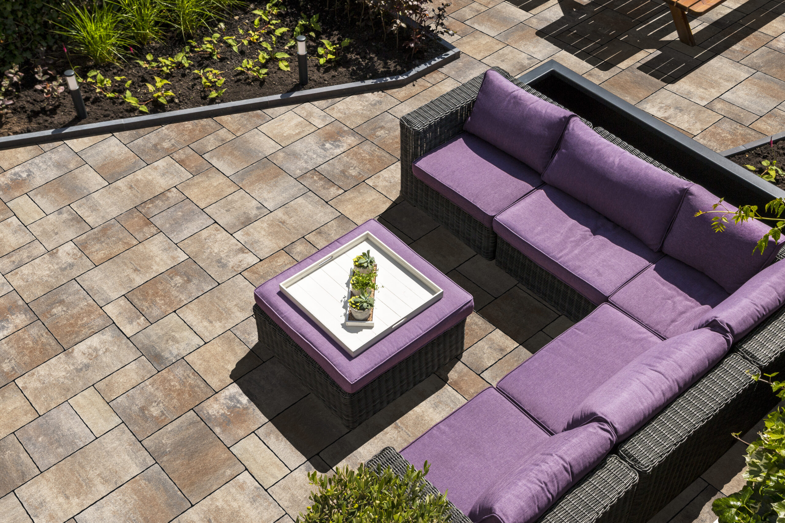 Gebruik de gewelfde betontegels als randen rond bloembedden of andere tuinelementen. Ze bieden een mooie overgang tussen verschillende delen van je tuin.