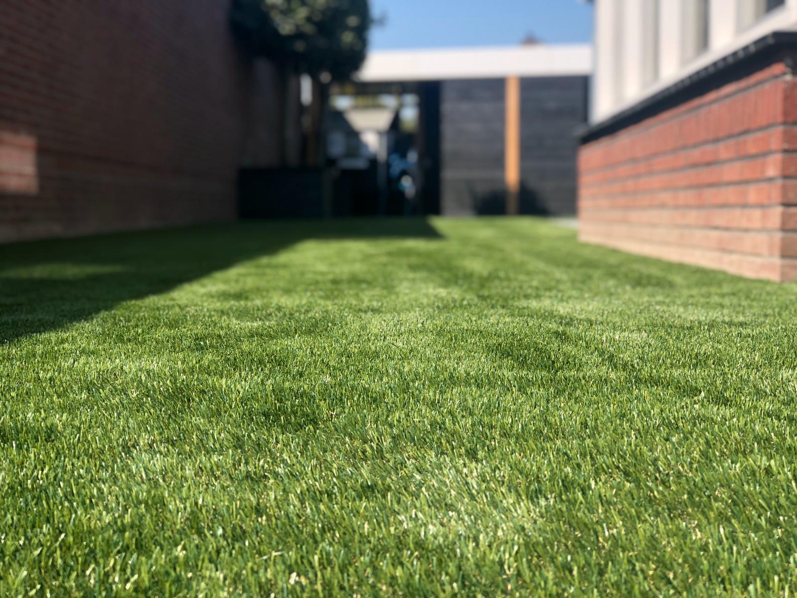 Ook het gazon van kunstgras levert een belangrijke bijdrage aan de onderhoudsvriendelijkheid van de tuin. Dit kunstgras is niet van echt gras te onderscheiden; het ziet er even prachtig uit en voelt bovendien natuurlijk aan. Groot verschil met echt gras is dat je geen tijd kwijt bent aan maaien, bemesten, sproeien en andere onderhoudswerkzaamheden.
