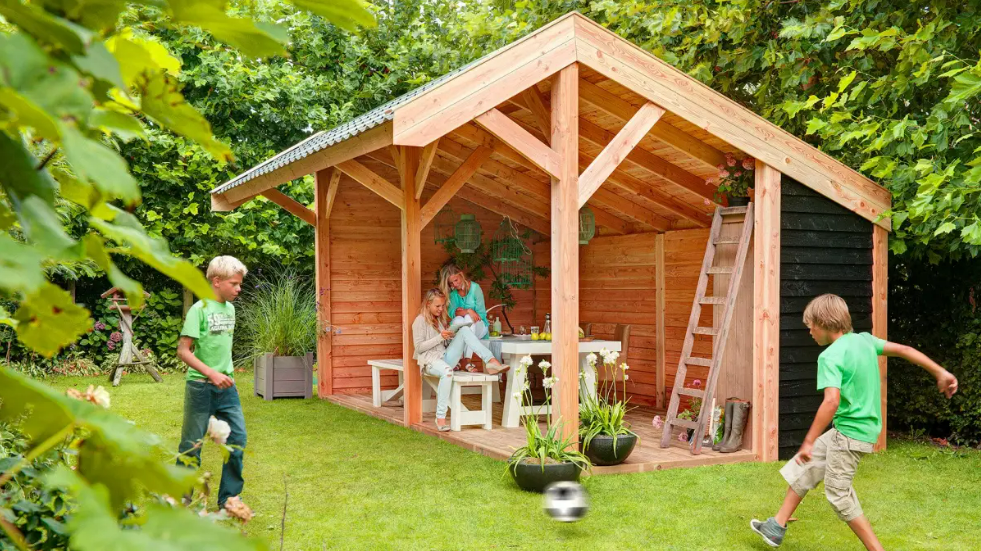 Daardoor is er voor iedere tuin een geschikt model verkrijgbaar. Van een enkele blokhut, die dient als handige opbergruimte, tot een overkapping en berging inéén, waarmee u uw tuin verrijkt met een heerlijk buitenverblijf.
