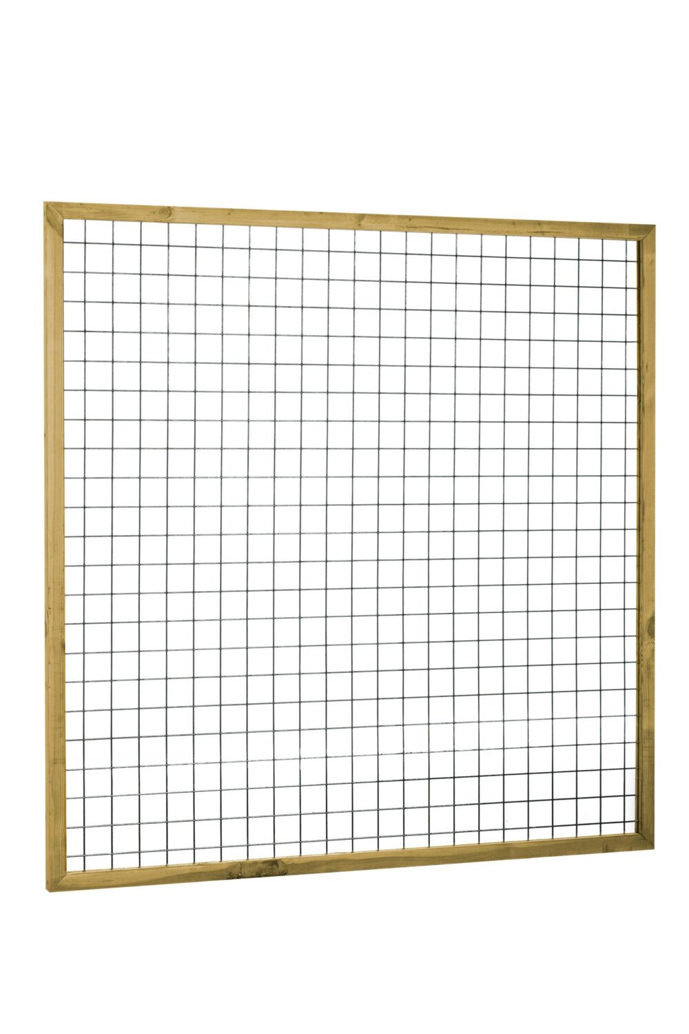 Eco betonijzertrellis, maas 7.5cm, in grenen houten raamwerk 4.5 x 4.5cm, groen geïmpregneerd