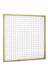 Deze panelen hebben een draaddikte van 5mm en een maaswijdte van 7,5 x 7,5cm. Het kader is gemaakt van grenenhout. De betonijzertrellis laat zich uitstekend combineren in een schutting waarbij er wat meer groen tussen mag.