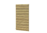 Een schuttingdeur van verschillende maten houten latjes, waarin een verzinkt stalen frame is verwerkt. Deze zorgt voor extra stevigheid en kan naderhand nog nagesteld worden. Deze deur is alleen linksdraaiend toe te passen.