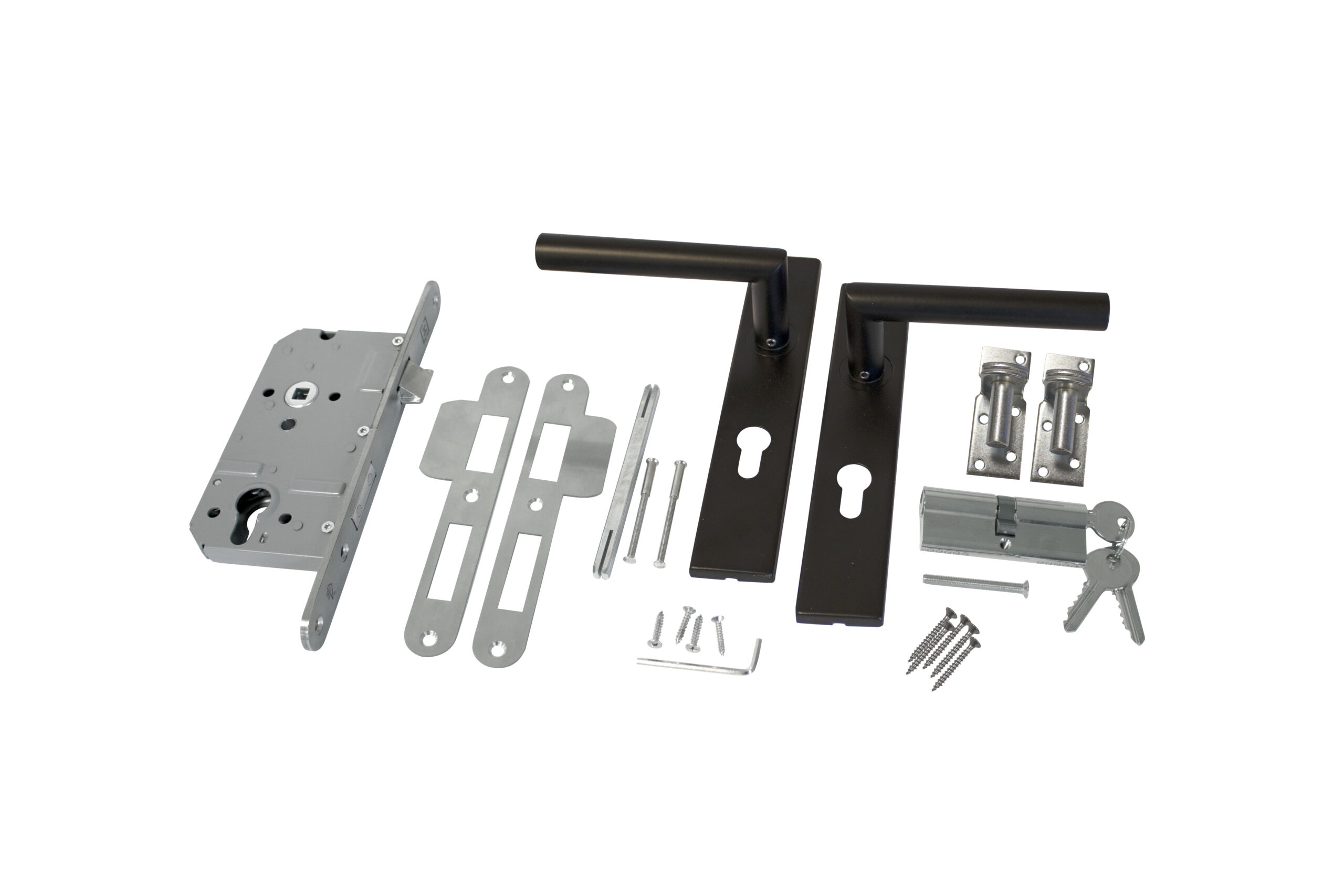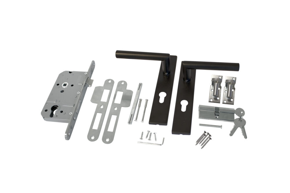 RVS Luxe deurbeslagset zwart gecoat. SKG keurmerk met slotkast, cilinder en slot