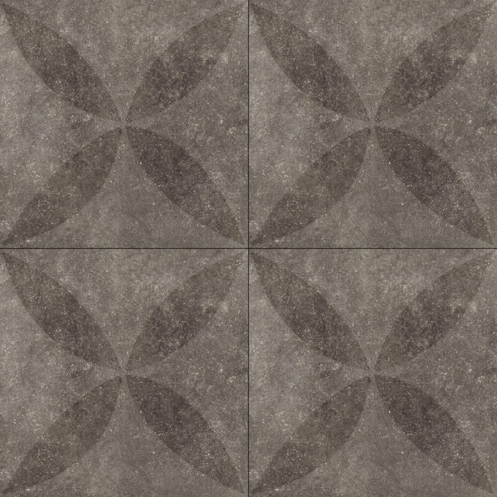 De Solostone Hormigon Flower Antra heeft subtiele cementtinten en is voorzien van een bloemdessin.