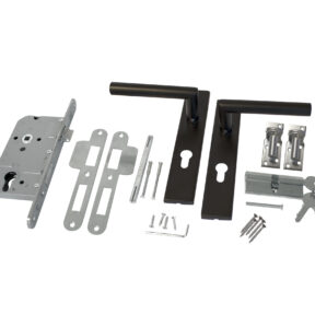 RVS Luxe deurbeslagset zwart gecoat. SKG keurmerk met slotkast, cilinder en slot