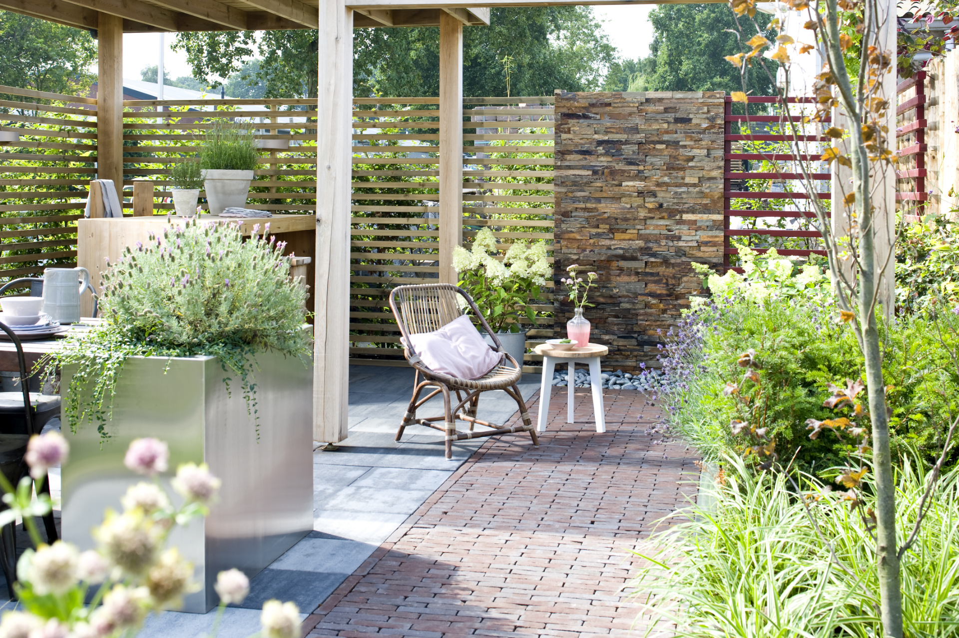 Veel van ons assortiment wordt sfeervol gepresenteerd in tal van inspirerende tuinsettingen. Zo krijgt u een goed beeld van hoe de diverse tuinartikelen tot uiting komen in uiteenlopende tuinontwerpen. Wilt u liever eerst online rondkijken, dat kan ook. Op onze website hebben we een inspiratiebron gerealiseerd met tal van tuinideeën.